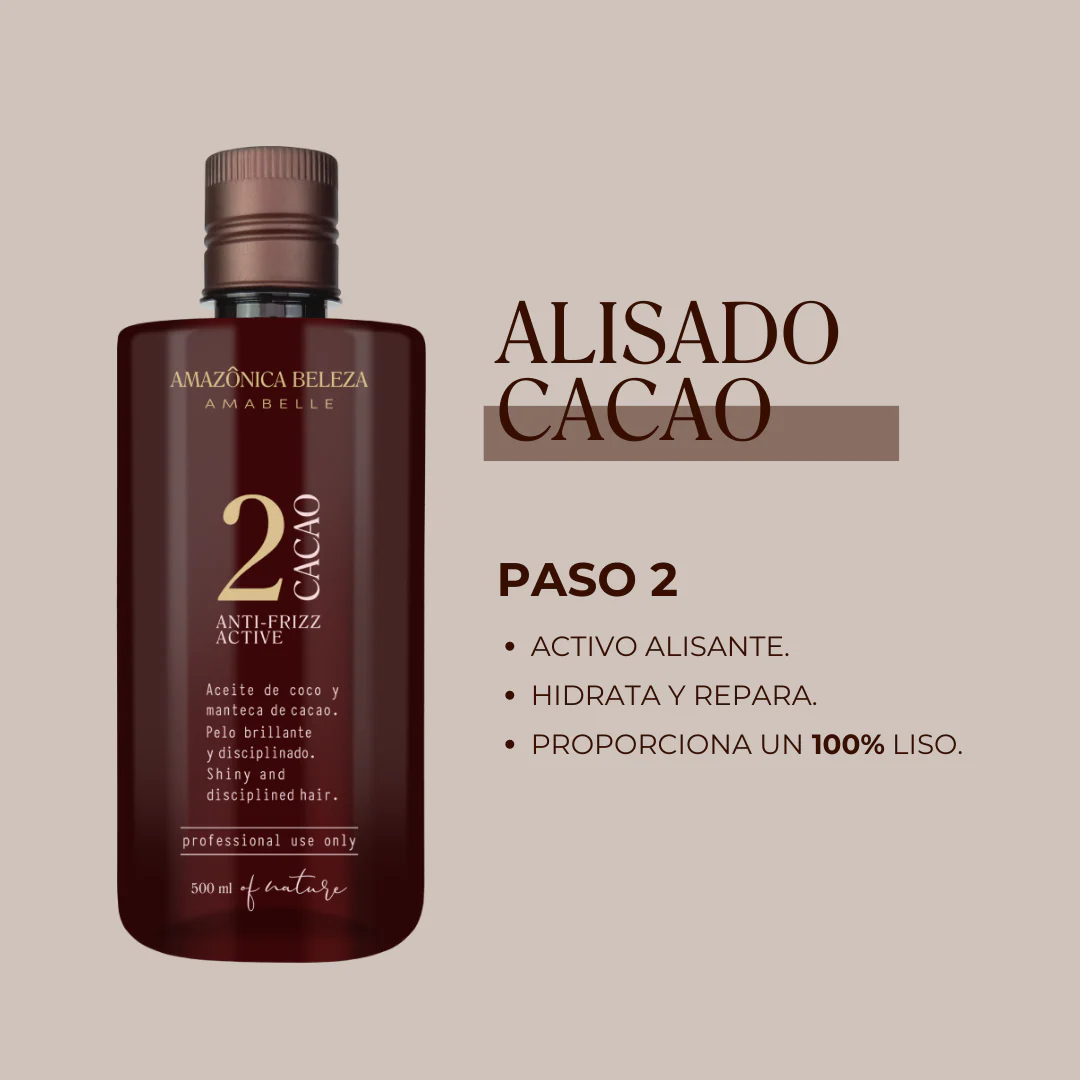 Este prododcuto para el Alisado es enriquecido con múltiples extractos naturales, entre ellos el cacao y el óleo de coco, los cuales tienen la capacidad de hidratar y reparar las hebras, además de proporcionar un 100% liso, promueve un pelo radiante todo el tiempo.