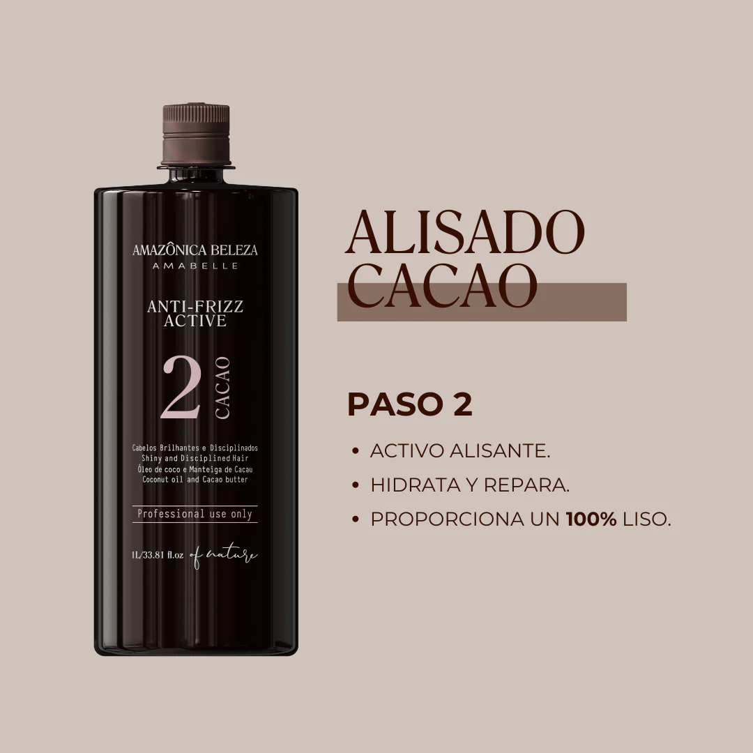 El kit de Alisado de Cacao está formulado especialmente para el pelo maltratado por químicos, ondulado, crespo y afro, grueso, delgado y deshidratado. Enriquecido con múltiples extractos naturales, entre ellos el cacao y el óleo de coco, con este alisado se logrará hidratar y reparar la hebras. Por lo que, además de proporcionar un cabello 100% liso, promueve un pelo radiante todo el tiempo.